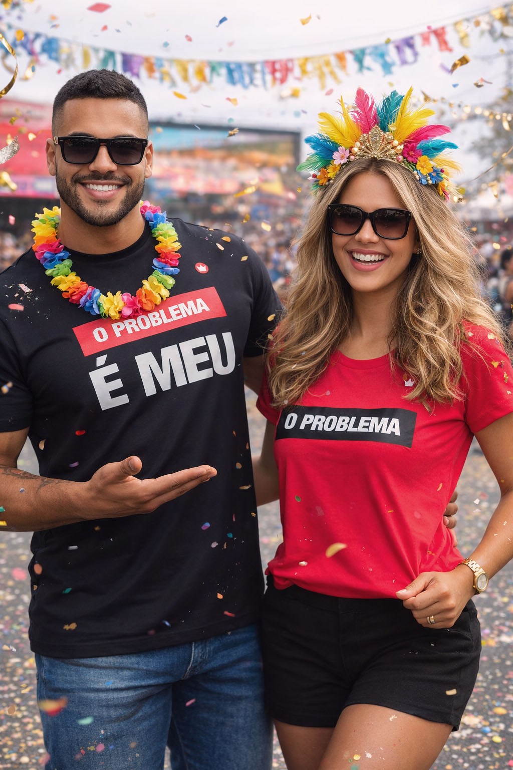 KIT COM 2 CAMISETAS CASAL O PROBLEMA É MEU